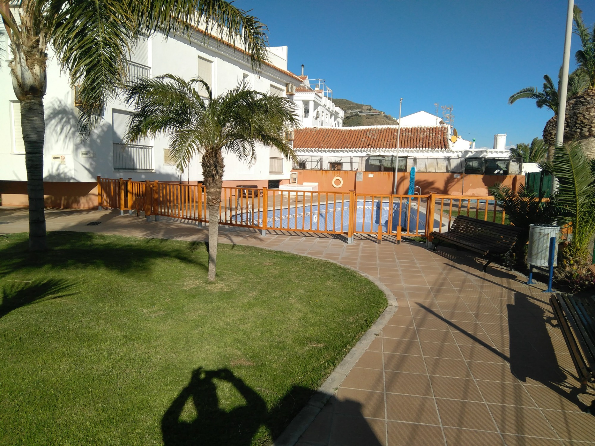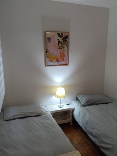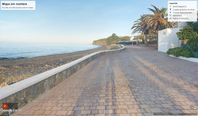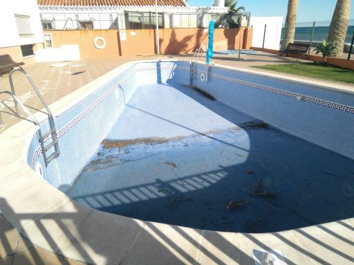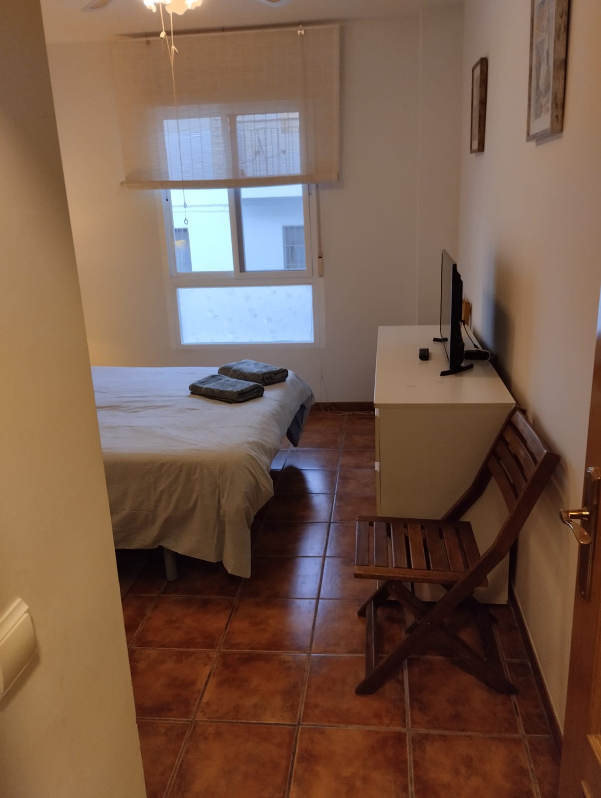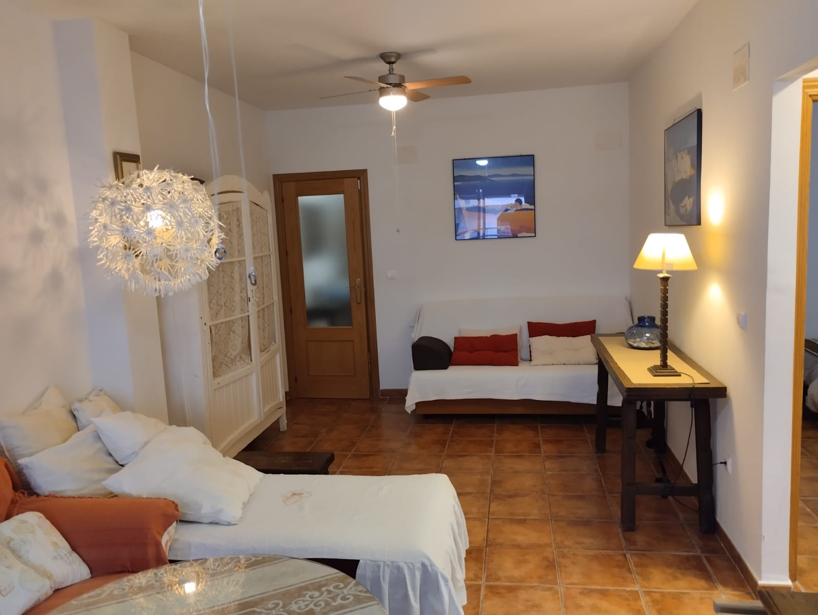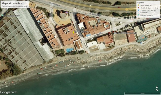 Maravillosas vistas en este apartamento a 40m de la playa de Castillo de Baños, con piscina, con acceso desde la piscina a la playa, con un dormitorio con cama de 1,50m y otro dormitorio con 2 camas de 0,90m, y posibilidad de 2 plazas mas en el sofá cama doble del salón.