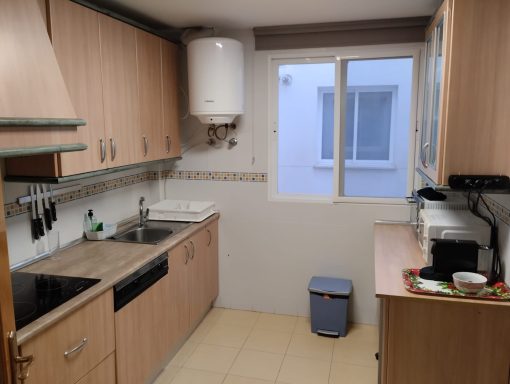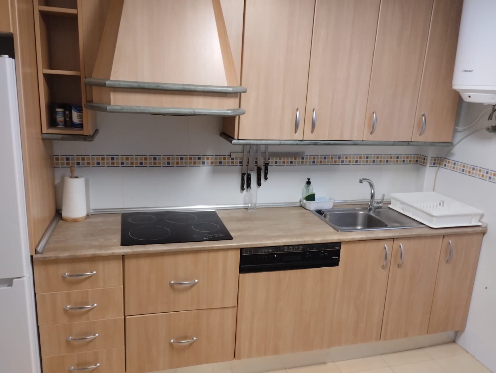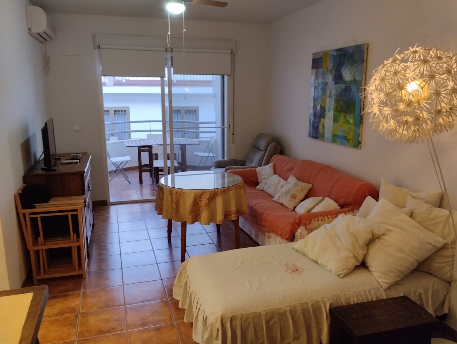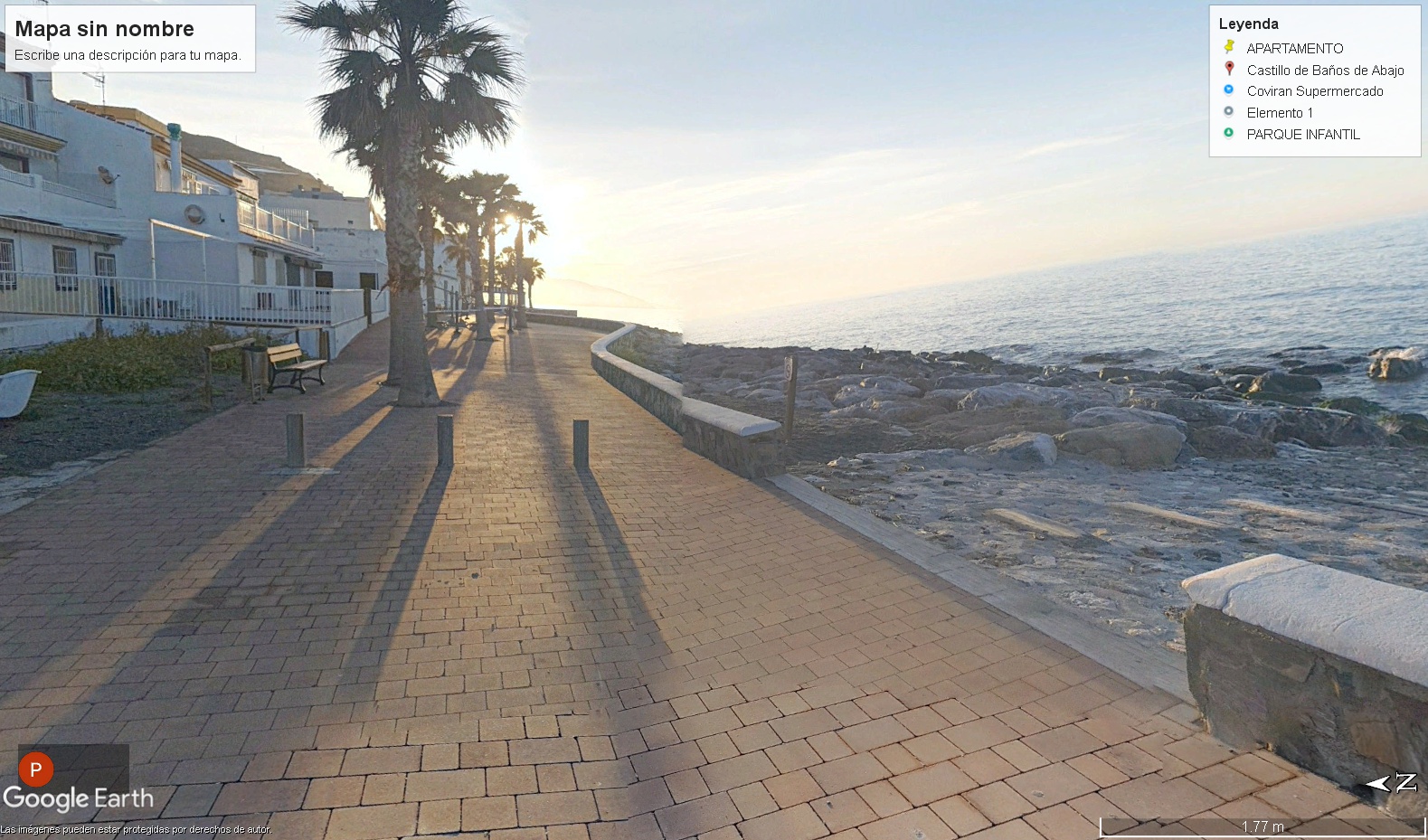 Maravillosas vistas en este apartamento a 40m de la playa de Castillo de Baños, con piscina, con acceso desde la piscina a la playa, con un dormitorio con cama de 1,50m y otro dormitorio con 2 camas de 0,90m, y posibilidad de 2 plazas mas en el sofá cama doble del salón.